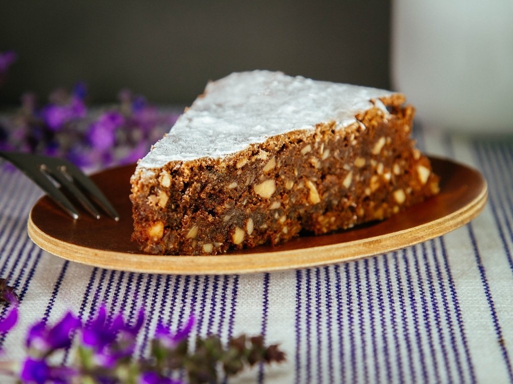 Heerlijke, ambachtelijke chocoladetaart van Ciao Gluten rijk aan geroosterde amandelen. Lekker voor bij de koffie of als desert. Lees meer