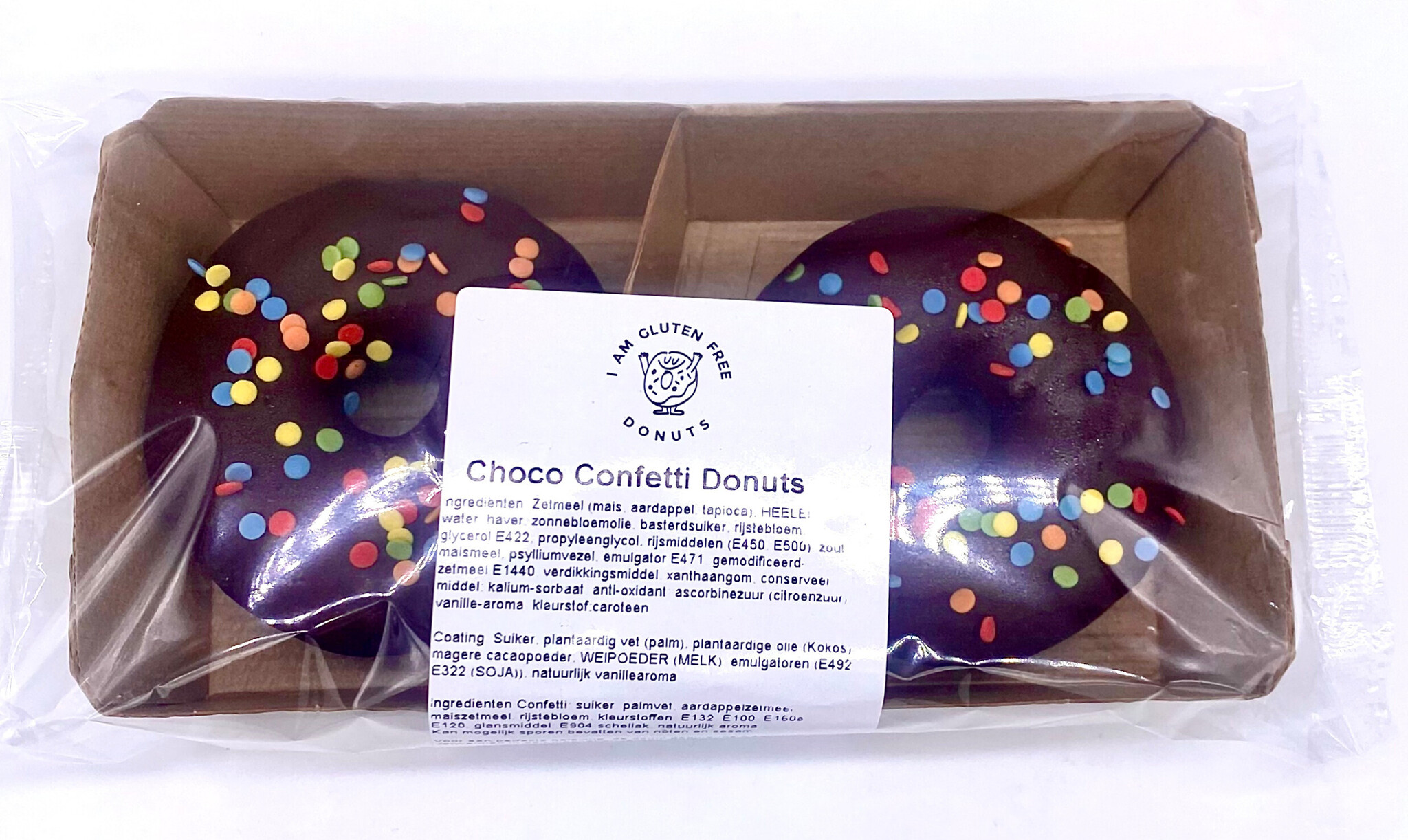 Chocolade Donuts met Confetti 2 stuks - Glutenvrij