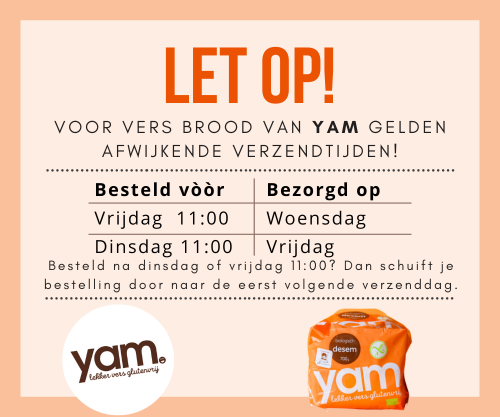 Verzending op dinsdag & donderdag. | Stevig voorgesneden en vers glutenvrij meerzadenbrood van YAM. Lees meer