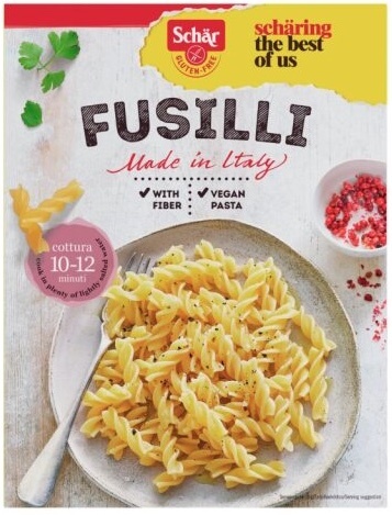 Glutenvrije fusilli van Schär. Gemaakt in Italië met 8,5 gram eiwitten per 100 gram. Binnen 10-12 minuten klaar voor een heerlijke maaltijd. Lekker, makkelijk en gezond! Lees meer
