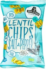 Chips van linzen! De chips heeft een stevige crunch, is rijk aan vezels en glutenvrij. In lekkere zout & peper smaak. Lees meer