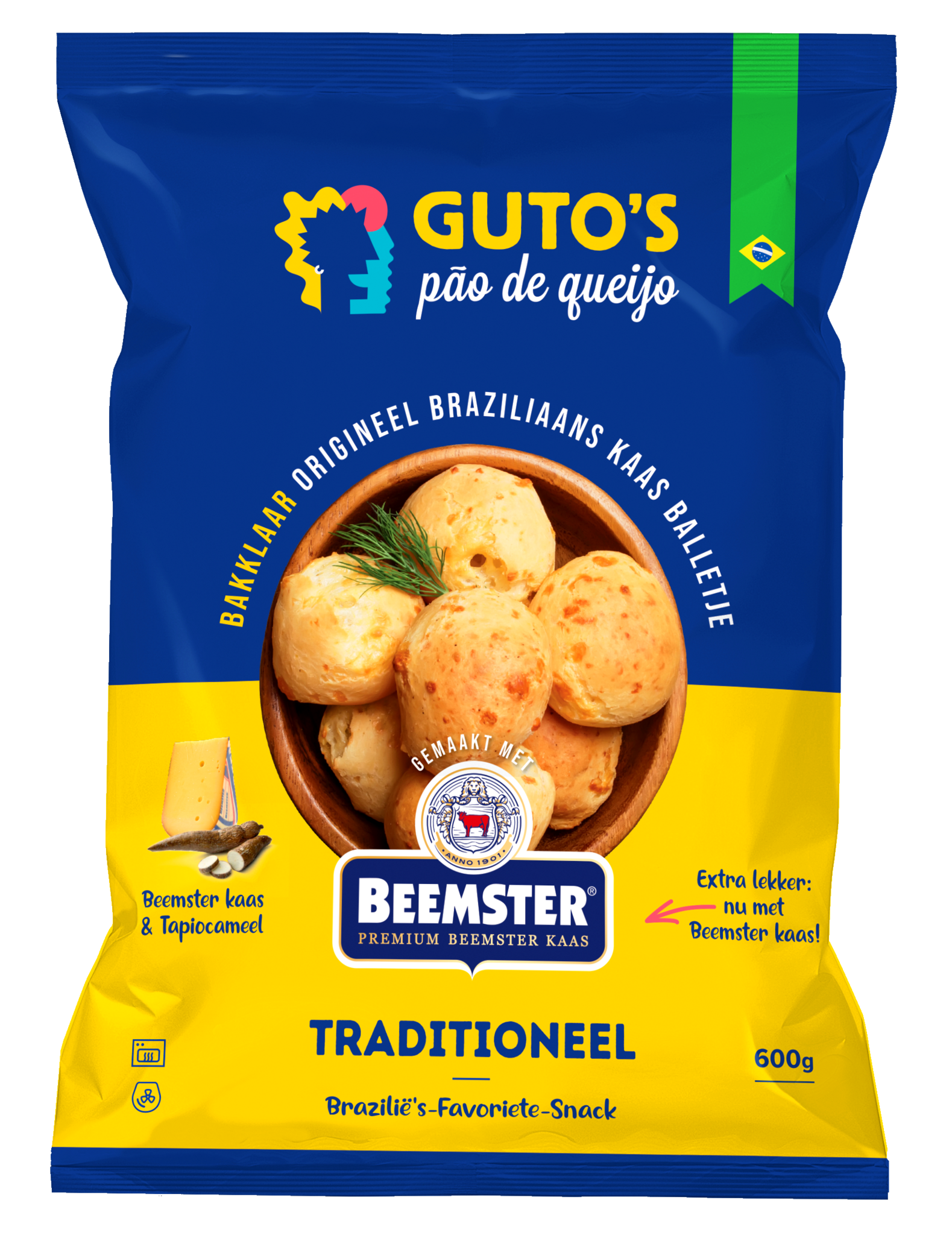 Ingrediënten: Tapiocabloem, kaas 22,2% (gepasteuriseerde koemelk, zout, zuursel, stremsel), melkpoeder, eipoeder, water, zonnebloemolie.