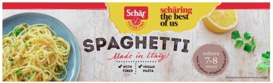 Glutenvrije spaghetti met eiwit van Schär. Gebruik zo'n 75 gram spaghetti per persoon. Deze pasta is gemaakt in Italië en thuis in 7 tot 8 minuten klaar. Eindelijk weer tijd voor heerlijke spaghettigerechten! Lees meer