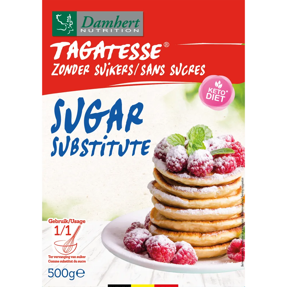 Glutenvrije zoetstof in poedervorm, ideaal voor bakken en koken. Tagatesse is suikervervanger 1 op 1, met weinig calorieën en bijna geen suikers. Perfect voor wie glutenvrij én suikervrij wil genieten. Lees meer