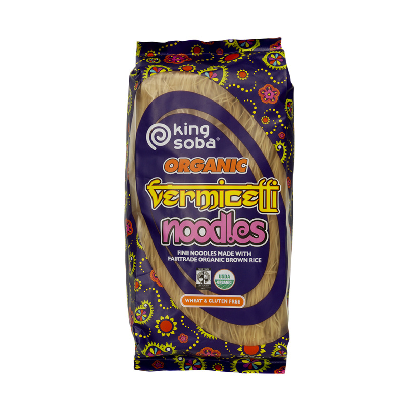 Biologische vermicelli noedels van King Soba. Met deze noedels van bruine rijst maak je een heerlijke glutenvrije Aziatische maaltijd. Lees meer